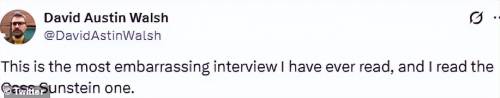 《华盛顿邮报》专栏作家大卫·弗伦奇直言:"我完全不知道她想达成什么。"甚至有评论说:"这场采访后,她应该被列入'不可雇佣名单'。"