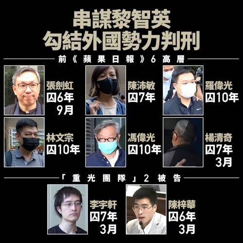 黎智英并非孤身完成所谓信息作战的设计,在其他七名主要被告中,多数为壹传媒中高层管理人员。