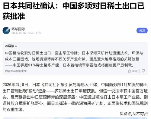 日本突然出现了一则新闻,中方上个月刚对其实施稀土禁令,现在就放开了。