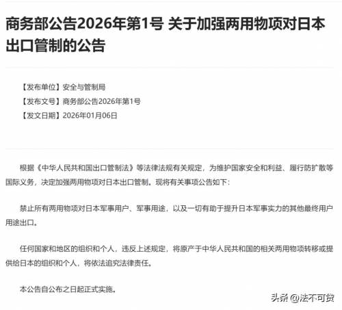1月6日,我们给日本下发了几项限制,其中就有禁止对他们出口两用物项用于军事方面,这里面自然就包括了稀土。