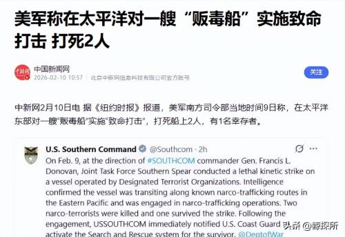 太平洋这边当地时间9日,美军南方司令部突然在社交媒体发文宣称,他们的南方之矛联合特遣部队,在太平洋东部打沉了一艘贩毒船。