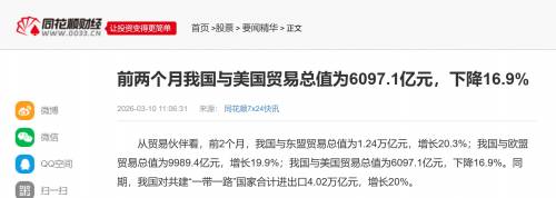 这部分如何解决呢?首先中美贸易量正在不断下滑,例如今年前两个月与去年同期相比,中国与美国的贸易额下降16.9%(见上图),但这并不影响中国今年前两个月的贸易顺差升至历史最高水平,并创下新的贸易记录。