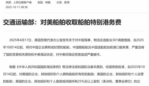 如果中国就是要所有美国商船“禁行巴拿马运河”,或者像去年十月对美国船舶收取“船舶特别港务费”那样(见上图),只要美国船只从巴拿马运河通行并抵达中国,我们就在此征收“船舶特别港务费”,美国会因此决定彻底对华“脱钩”?