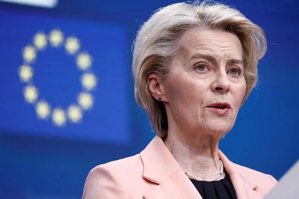 ▲当地时间2024年3月21日,欧盟委员会主席冯德莱恩在欧盟峰会结束后举行新闻发布会。视觉中国