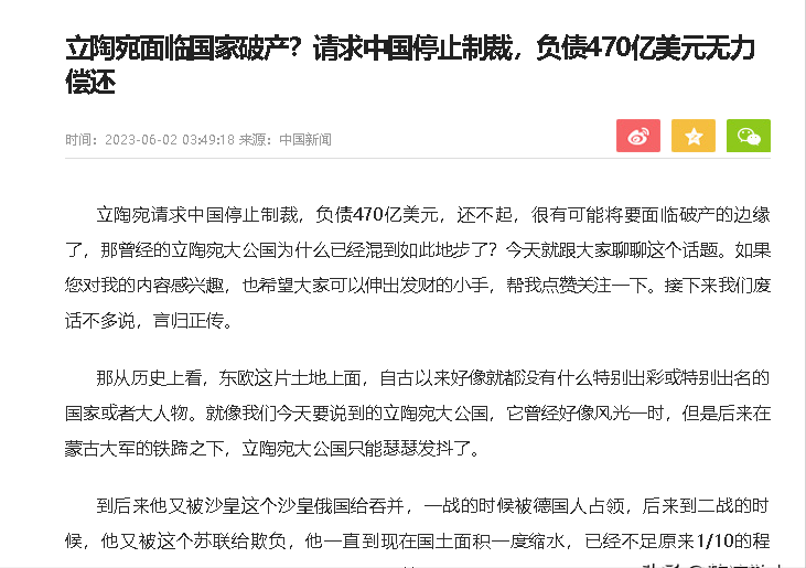 [4] 头条账号-环球网-《俄媒:蕞尔小国立陶宛挑衅中国,愚蠢》