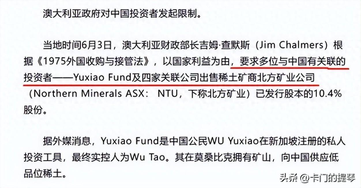 就在不久前,澳大利亚政府对在澳投资的中资企业出手,用一纸公文就直接抽走了它们在布朗斯山脉稀土项目的股份。