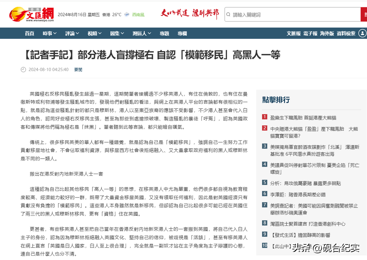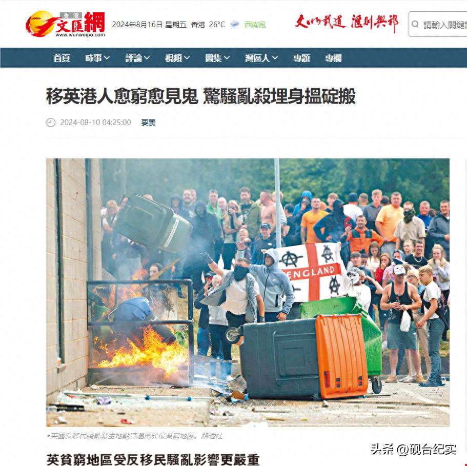 英国近期爆发的反移民骚乱,成为了港媒手中一枚有力的“反击武器”。