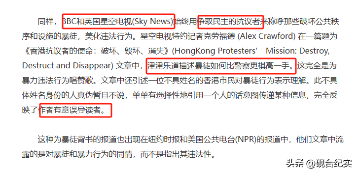 比如说之前的香港暴乱问题,当时BBC始终津津乐道暴徒如何如何比警察更厉害,完全颠倒是非,美化暴徒。