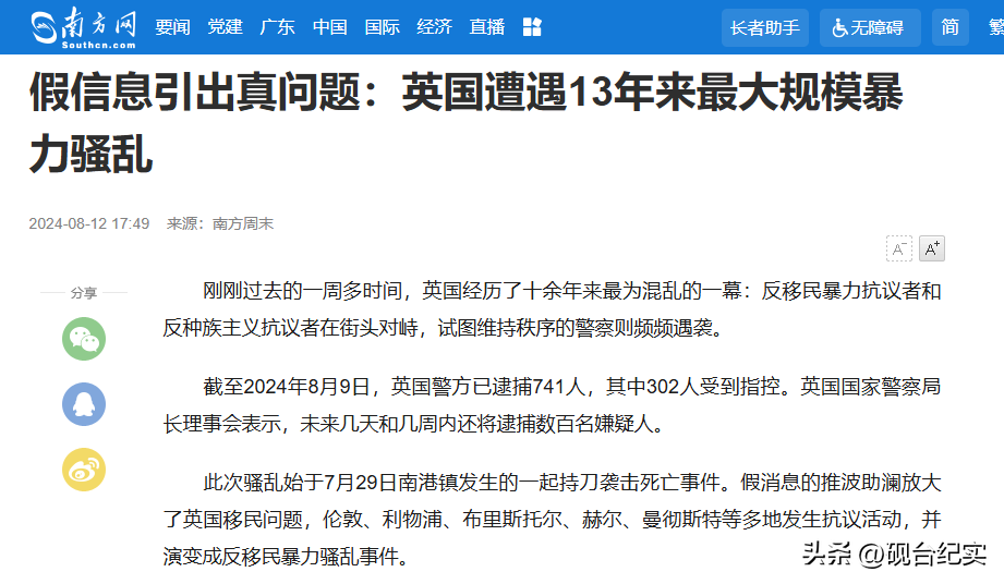 2024-08-12 17:49 来源:南方周末假信息引出真问题:英国遭遇13年来最大规模暴力骚乱