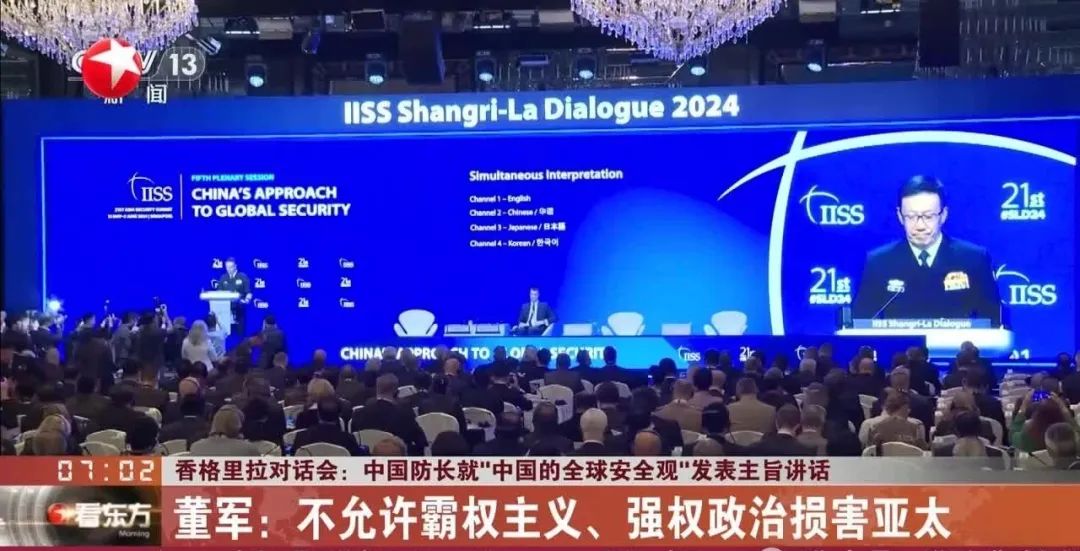 在6月2日上午的全体大会上,董军做了《中国的全球安全观》主旨发言。