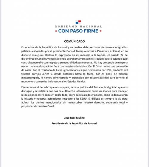 巴拿马和巴拿马人民“完全反对”特朗普在就职典礼中关于巴拿马运河的言论。