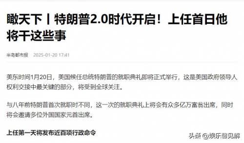 在科技大佬云集的前排座位,在各国政要注视的目光中,特朗普开启了他的第二任总统任期,这不仅是他个人的政治生涯的新篇章,也是美国历史的新起点。