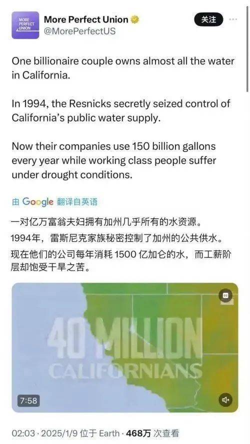 再说了,如果真的就是开心果种植是今年加州山火的元凶,美国媒体、美国政府要清算的难道不是雷斯尼克家族么?把雷斯尼克家族的农场彻底摧毁,并收回水库不就得了!