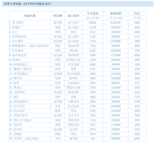 可以看到长江的径流量排全球第三,比美国径流量最高的密西西比河多了68.2%