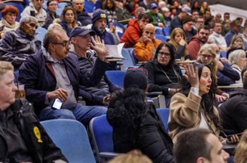 26日,美国洛杉矶县政府在圣莫尼卡举行废墟清理工作会议,本意是想教太平洋帕利塞德地区的居民如何清理山火过后的废墟,但当地居民就一系列问题质问政府,会议很快陷入混乱。