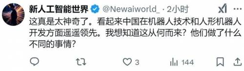 当这段视频传到国外,内心最绷不住的其实还是外国人,他们刚刚经历了中国DeepSeeK的斯普尼特时刻,又被宇树机器人刺激,真的是有点受不住了。