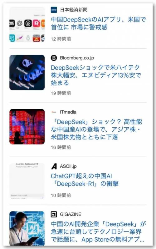 28日凌晨5点,搜索DeepSeek的相关新闻,主流媒体只有《日本经济新闻》一家报道。其它多为小众的技术类媒体。