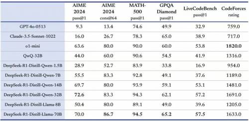 DeepSeek-R1蒸馏小模型对比情况 DeepSeek微信公众号