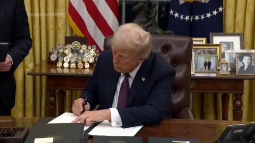 20日,特朗普签署行政命令,要求暂停美国所有对外援助计划 视频截图
