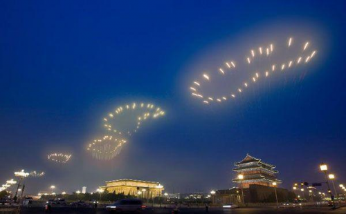 每个烟花上都配上了芯片,安装了压力控制装备,通过电脑控制精确点火,在规定的时间、高度、方位、朝向爆炸,组成各式各样的文字和图案。