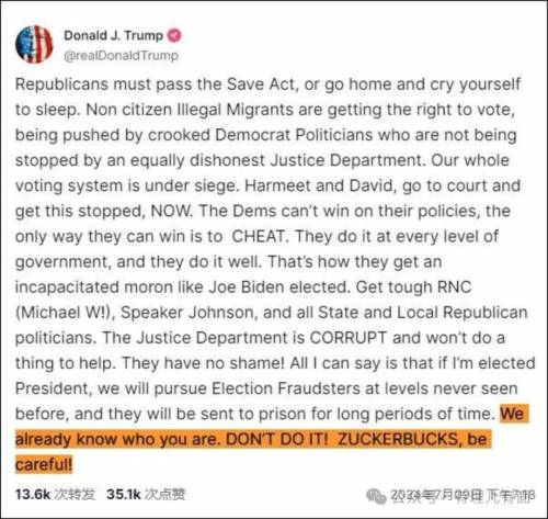 光阴如白驹过隙,扎克伯格万万没有想到,到了2024年年中,特朗普的选情不断看涨,卷土重来已经不可避免,这里也不排除扎克伯格是从大数据中提前得知了信息,他开始改变态度,向特朗普示好。