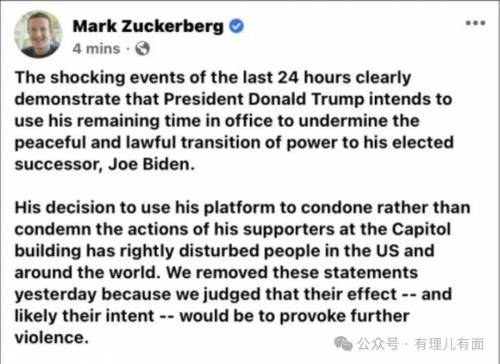 墙倒众人推,扎克伯格这个当年曾经忠诚的走狗,最后又推了一把特朗普。