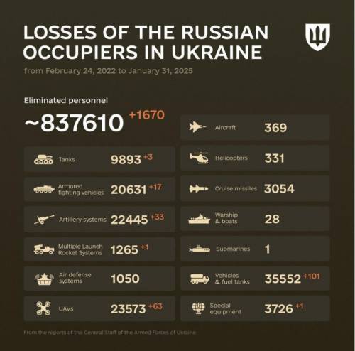 2025年1月31日,俄乌战争进入第1073天。