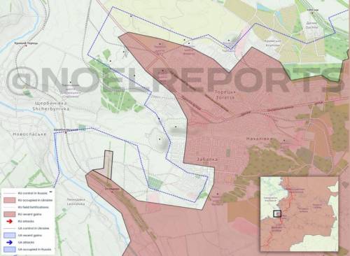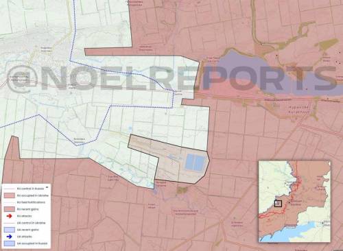 再往北一点,俄罗斯人确实取得了不小的进展,控制了新安德烈耶夫卡,并部分进入了纳季夫卡,后一个定居点及其附近正在进行战斗。