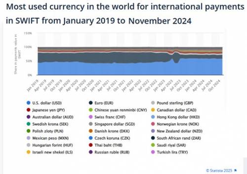 SWIFT货币市场份额,2019年1月-2024年11月Statista