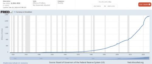 1990年1月,美国流通中的现金为2571亿美元,2000年1月增至5946亿美元,2010年1月9212亿美元,2020年1月1.80万亿美元,2025年1月2.36万亿。大约是每10年翻倍。在美国内部,大约是6000亿美元现金在流通,整体规模与美国的经济规模相比,并不是很大的数字。毕竟美国内部刷卡较为流行,信用体系发达,美元现金意义下降。在全球,100美元的绿票子就较为常见,许多人作为资产与信用手段。美国通过美元现金手段占全球的便宜,从数值来看不算太大。美元现金增长算是较为“正常”的数据。