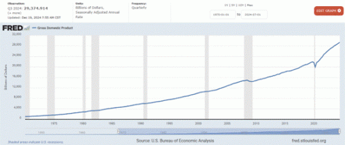 美国名义GDP最近4年增长了35%,从2020年的21.37万亿增至2024年的28.78万亿美元,比疫情前的增速轨迹还更快了。这样的GDP数值,体现了美国经济的两大特色:一是高度垄断,二是低效。垄断符合人们对美国的认知,低效需要解释。