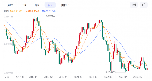 人民币兑美元汇率月线走势图