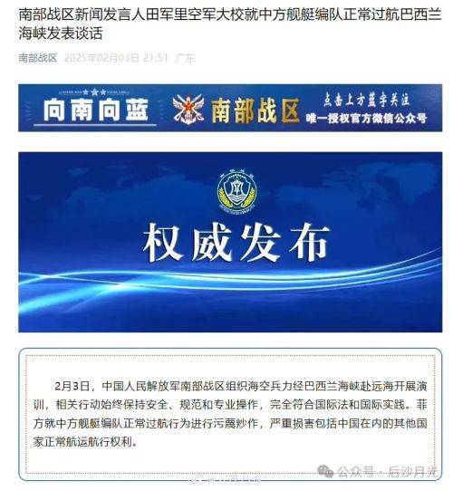第二天,2月3日,我南部战区就发布公告证实了此事。