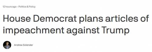 【众议院民主党人计划对特朗普提出弹劾条款】