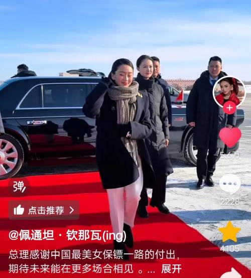 甚至在在佩通坦返程机场送行,佩通坦下车后中国美女保镖聊了几句话,中国女保镖严月霞对于佩通坦和自己的短暂道别对话很是受宠若惊的,在佩通坦主动微笑交流,难得看到严月霞露出的微笑,估计是在感谢中国美女保镖这一路的付出。