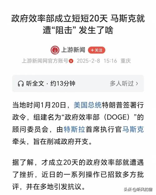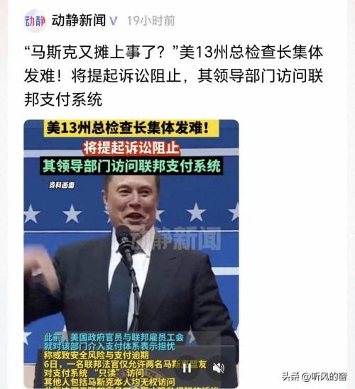 马斯克顶住各方压力,甚至美国13个州的总检察长集体发难,将提起诉讼阻止其领导部门访问联邦支付系统,此举主要原因就是马斯克关闭美国国际开发暑,断了很多人的“粮”。