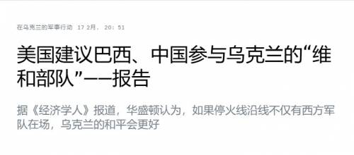 这还不是最荒唐的。按照英媒所说,美国之所以不愿意出兵组建乌克兰“维和部队”,是因为“五角大楼许多人认为更应该将美军用在与中国的冲突中”,所以这才有了“让中国或巴西等非欧洲国家出兵”的想法。