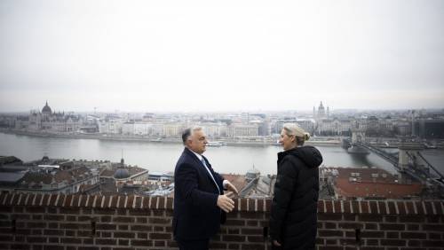 欧尔班(左)与魏德尔在布达佩斯举行会谈。