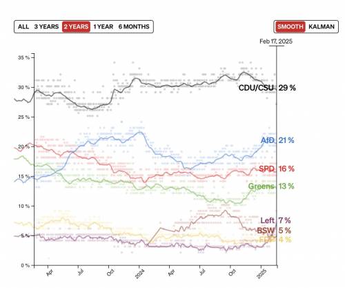 除了国内小气候的加持,国际大气候也变得有利于选择党。美国总统特朗普重返白宫后,其团队以各种方式为该党“助选”:马斯克也多次喊话“只有选择党能拯救德国”;万斯在慕安会演讲时猛批德国建制派的移民政策与“防火墙”;震惊欧洲的美俄会谈乃至旨在解决乌克兰危机的“和平计划”,恰好契合选择党的外交政策……