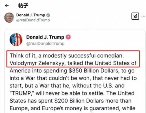 2月19日,美国总统特朗普在社交媒体发表长文,将俄乌战争责任归咎于乌克兰总统泽连斯基,称其以 “小有成就的喜剧演员” 身份诱使美国投入 3500 亿美元军援,并指责乌克兰 “拒绝选举”“支持率低迷”。