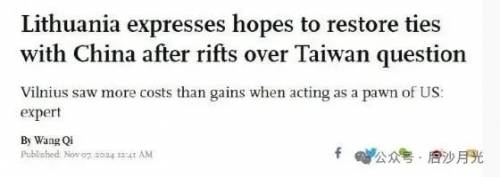 多家欧洲媒体也发表评论,大标题《立陶宛表示希望在台湾问题上恢复与中国的关系》,副标题:维尔纽斯作为美国棋子,成本大于收益。