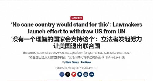 据“福克斯”新闻报道,近期多名共和党议员已经开始着手起草一份名为《2025年完全脱离联合国法案》,法案的内容很简单:要求美国退出联合国及其附属机构,并停止对上述机构的资助。