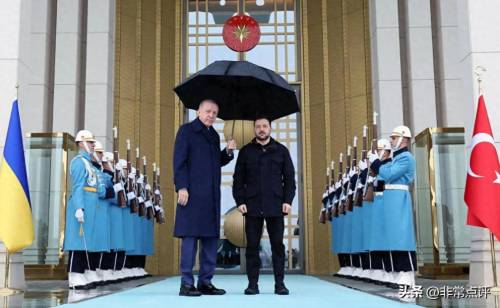 因为当天天气恶劣,埃尔多安亲自为泽连斯基打了一把黑色的伞,事后这张照片被媒体解读为:泽连斯基就像风雨中的弱者,而身材高大的埃尔多安则想充当保护者的形象,甚至想告诉全世界,未来这个人由我们土耳其罩着。