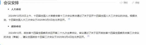 2、第二个会议开始和结束时间:2025年3月5日(星期三)召开,预计3月11日(星期二)下午闭幕,具体以实际闭幕时间为准。