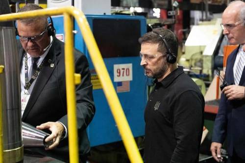当地时间2024年9月22日,美国宾夕法尼亚州斯克兰顿,乌克兰总统泽连斯基访问当地一家弹药兵工厂——斯克兰顿陆军弹药厂