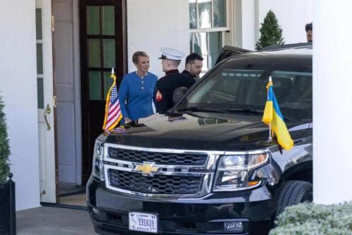 2月28日,乌克兰总统泽连斯基(左三)离开美国华盛顿白宫 图:新华社
