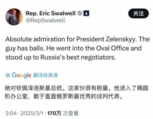 白宫会晤结束之后,美国多位政府人员,发文支持泽连斯基,并吐槽美国外交政策的失败,甚至开始钦佩泽连斯基的胆量。