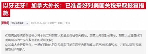 前一天,加拿大外交部长梅拉妮·乔利告诉媒体,特朗普的关税对该国构成了“生存威胁”,因为就业机会面临风险,但“如果美国决定发动贸易战,我们将做好准备”。