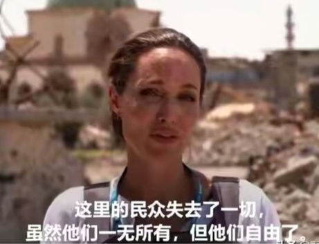 ▲安吉丽娜·朱莉曾穿着防弹衣站在废墟前说过一句名言:这里的民众失去了一切,但他们获得了自由