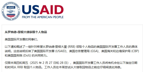 根据国际开发署的行政休假通知“从2月23日起,除个别关键人员,开发署所有直接雇员将在全球范围内停职,2月27日28日两天,开发署员工可以回到工位拿走自己的物品,限时15分钟。
